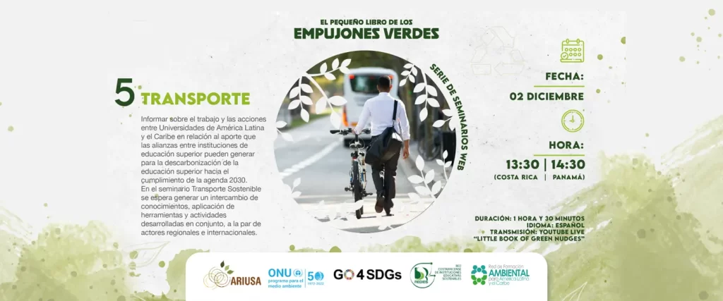 En seguimiento de la Publicación “El Pequeño Libro de Empujones Verdes” se llevó a cabo el V Seminario Web sobre “Transporte sostenible”, a través de la plataforma Youtube el día 02 de diciembre de 2021. Este quinto…