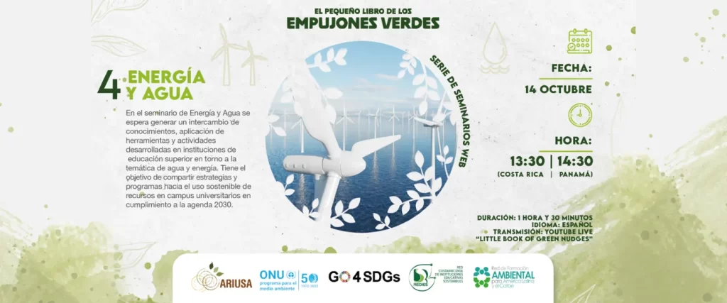 En seguimiento de la publicación “El Pequeño Libro de Empujones Verdes”, el 14 de octubre de 2021 se llevó a cabo el cuarto seminario web sobre “Energía y agua en las instituciones de educación superior…